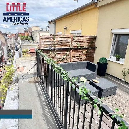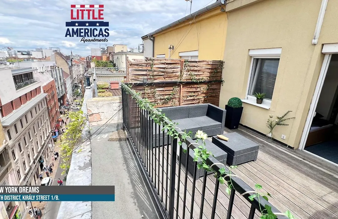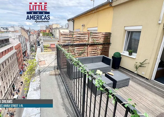 L'appartement Little Americas New York Rooftop Terrace est situé au centre de Budapest, non loin de la Basilique Saint-Étienne de Pest. Profitez d'une promenade dans le pont Erzsébet, à environ 1 km de la résidence. La Place des Héros est à 35 minutes à pied.
